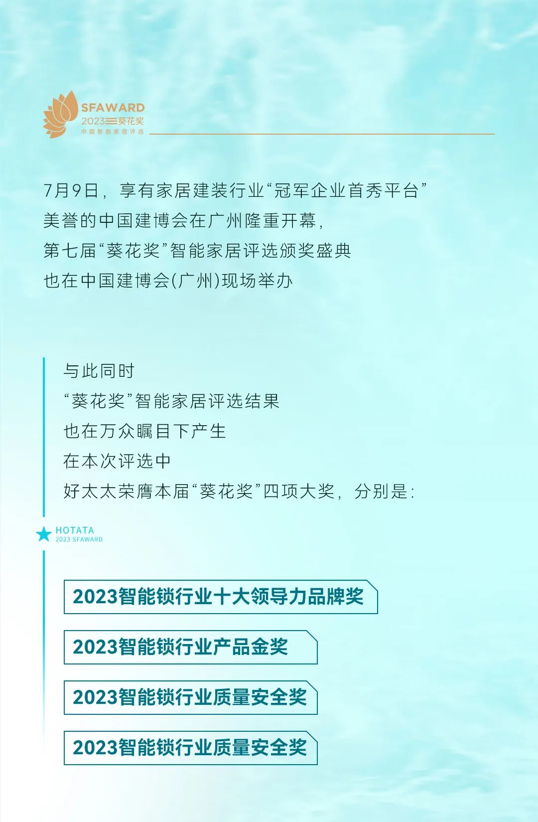 首頁 > 關(guān)于mk体育-MKsports官网 > 品牌資訊 > 焦點(diǎn)新聞 > 榮耀領(lǐng)航,葵花見證 | mk体育-MKsports官网榮膺本屆葵花獎(jiǎng)四項(xiàng)大獎(jiǎng)